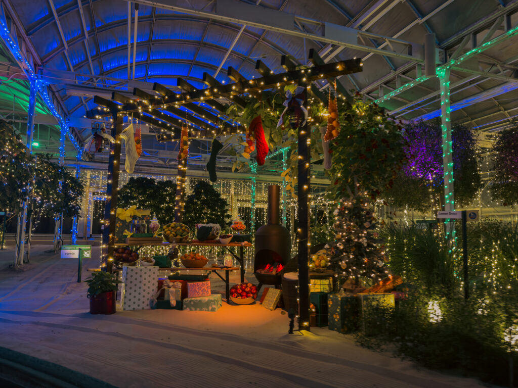 That is the hook that makes Glimmering Greenhouses more than pretty lights. You are floating through a real, functioning place, dressed up for the season.