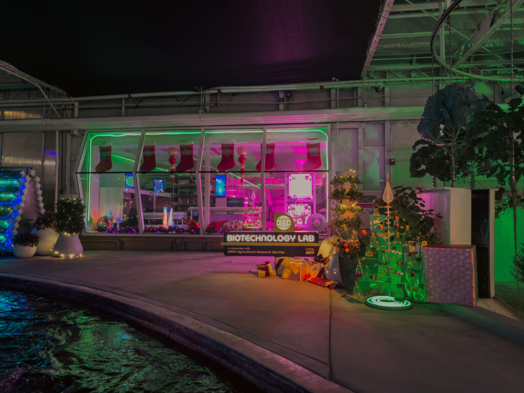 Even with the lights, the most impressive thing about this attraction is that it is not a fake set. It is a working environment, and Disney calls out the real techniques being used, including innovative growing methods and crop development aimed at feeding a growing planet.